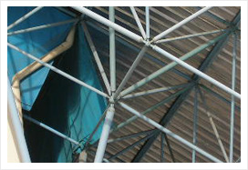 スリムですね、トラス部材が。基礎へのジョイントも、まさに「ピン」ですね。